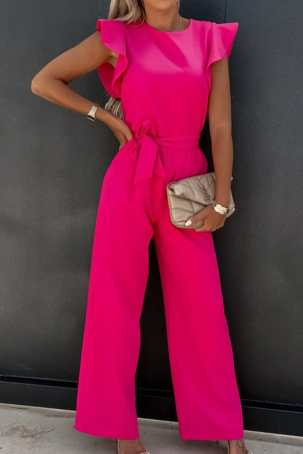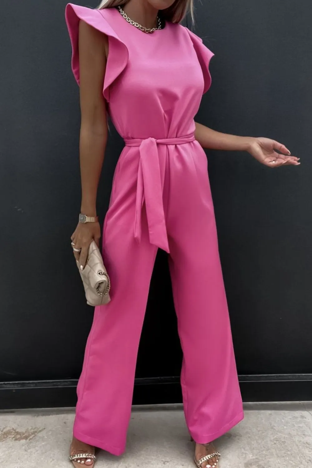 Embody serene sophistication with the Vorithane Cap-Sleeve Linen-Weave Jumpsuit—a minimalist summer essential designed for the woman who values ease without compromise. Crafted from a lightweight, opaque polyester blend that mimics the texture and drape of fine linen, this round-neck jumpsuit features delicate cap sleeves, a self-tie waist for subtle definition, and a relaxed wide-leg silhouette that flows with every step. Free of logos or excess, it reflects the old-money ideal: luxury through cut, fabric, and quiet confidence.
