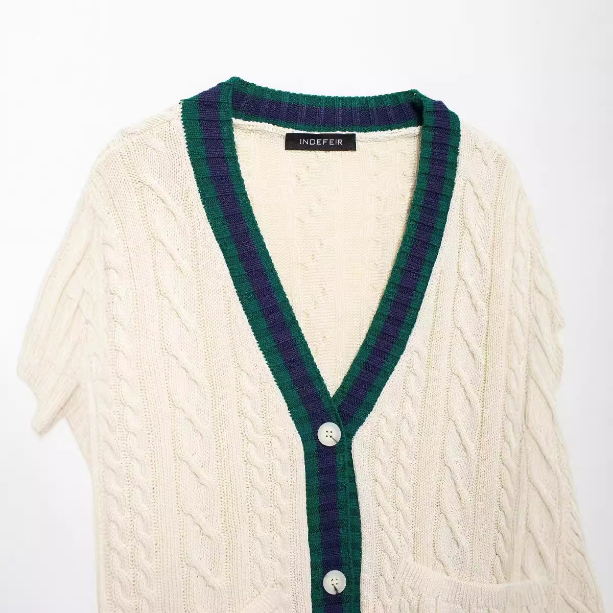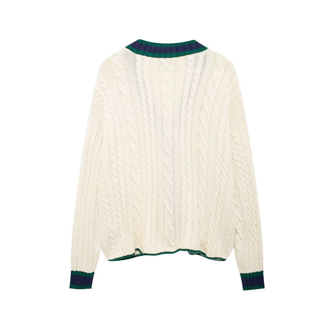 Be the first to review “Vorithane Contrast-Trim V-Neck Knit Top Jacket”