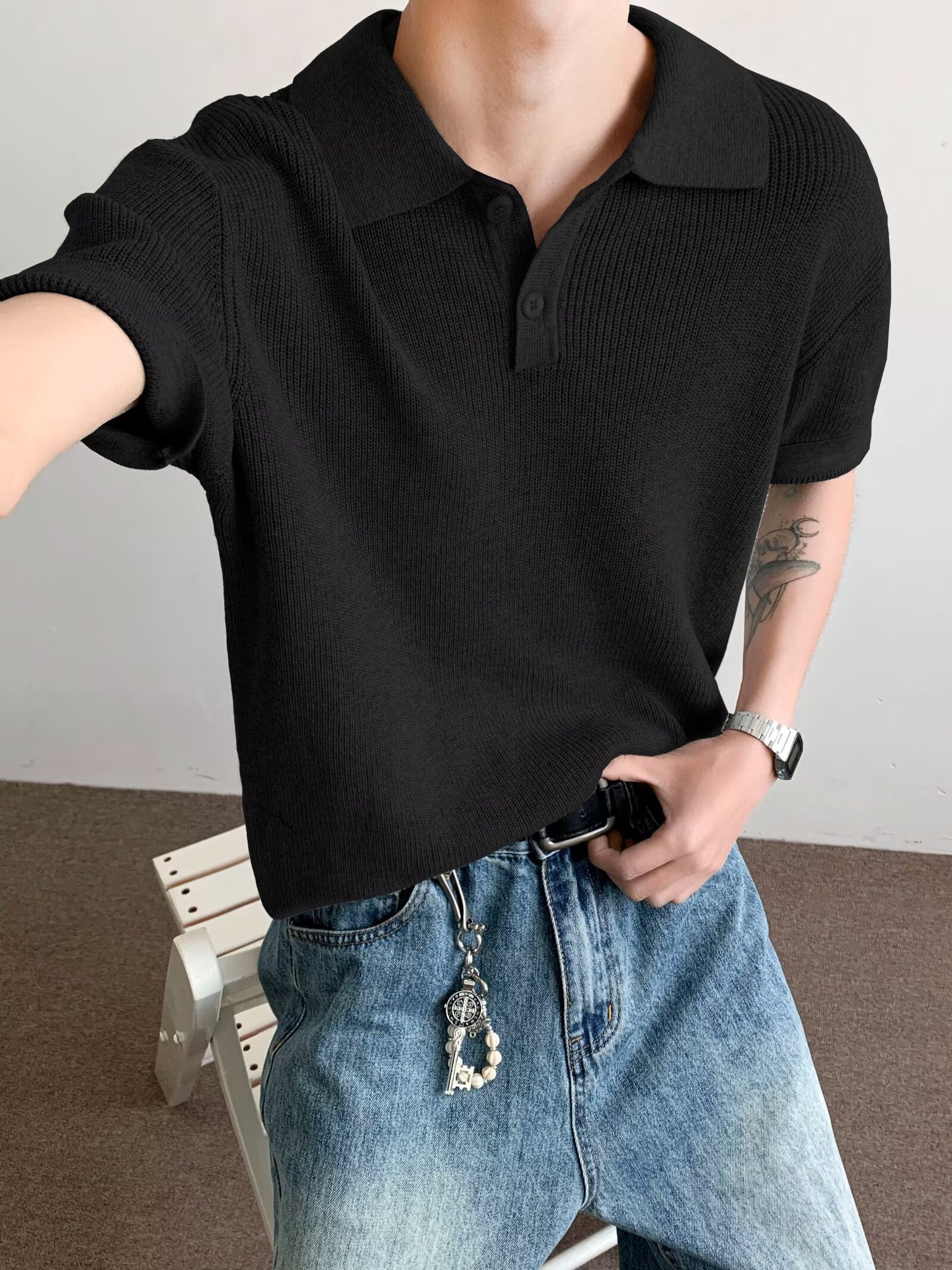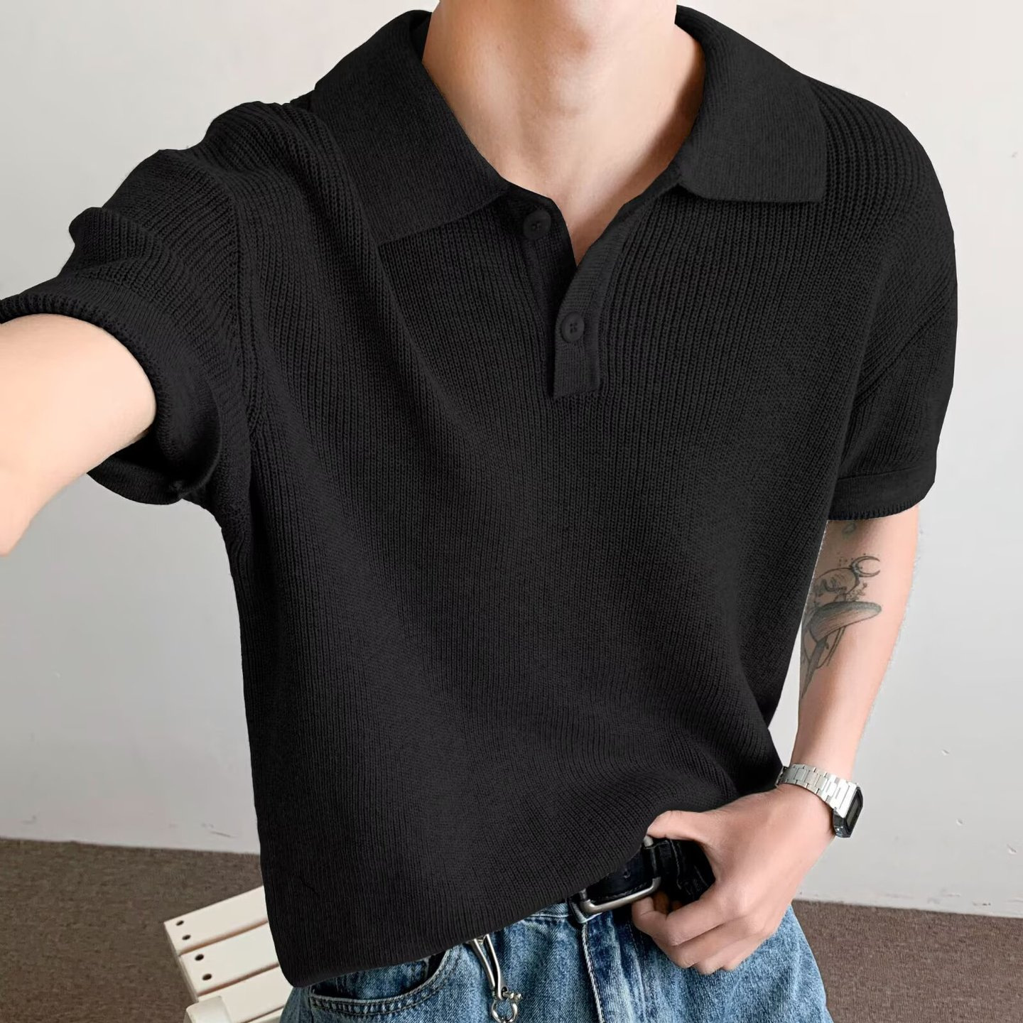 Elevate your warm-weather wardrobe with the Vorithane Knit-Collar Summer Polo—a seamless blend of sporty heritage and quiet luxury. Crafted from a lightweight, breathable polyester knit that mimics the soft handfeel of fine cotton piqué, this short-sleeve polo features a structured knit collar that holds its shape without stiffness, offering a clean, polished look without effort. The tailored athletic fit ensures comfort without bulk, while the minimalist design—free of logos or distractions—speaks to the old-money ethos: understated, intentional, timeless.