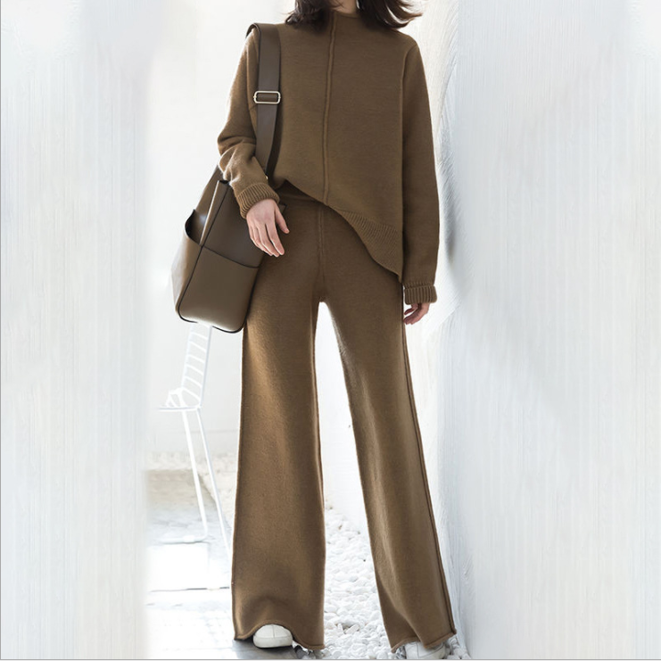 Elevate your off-duty hours with the Vorithane Knit Wide-Leg Lounge Set—a seamless blend of relaxed luxury and intentional design. Crafted from a soft, heavyweight knit with a fluid drape, this two-piece set includes a relaxed pullover sweater and high-waisted wide-leg pants that echo the silhouette of tailored suiting—yet feel like second-skin comfort. In a single universal size designed to flatter a range of frames, it offers effortless elegance for morning coffee, work-from-home days, or quiet weekends. Minimalist, cohesive, and quietly luxurious—true old-money style doesn’t shout; it simply exists with grace.